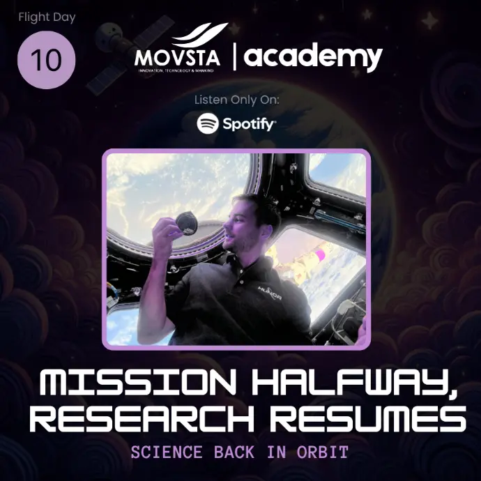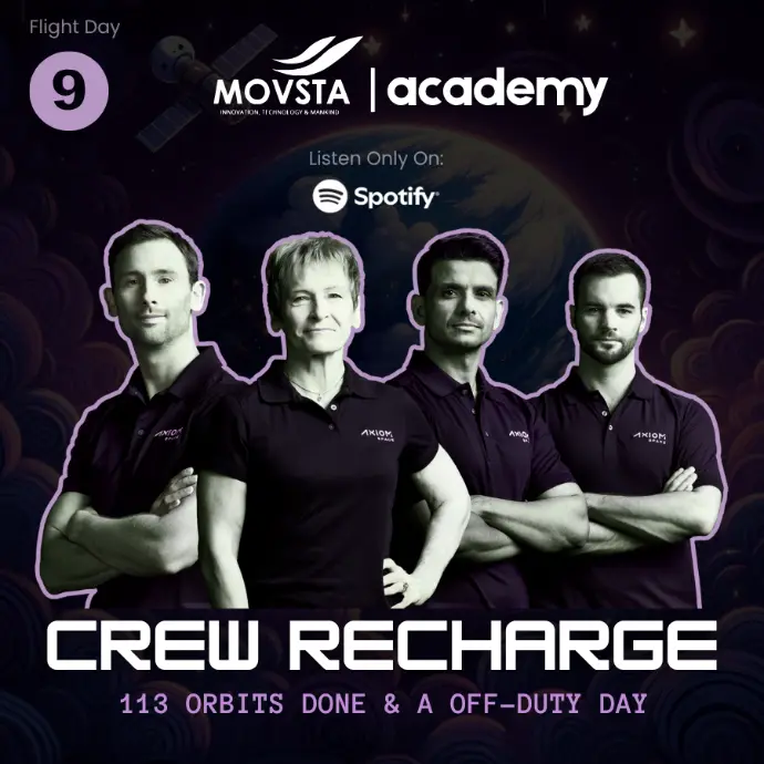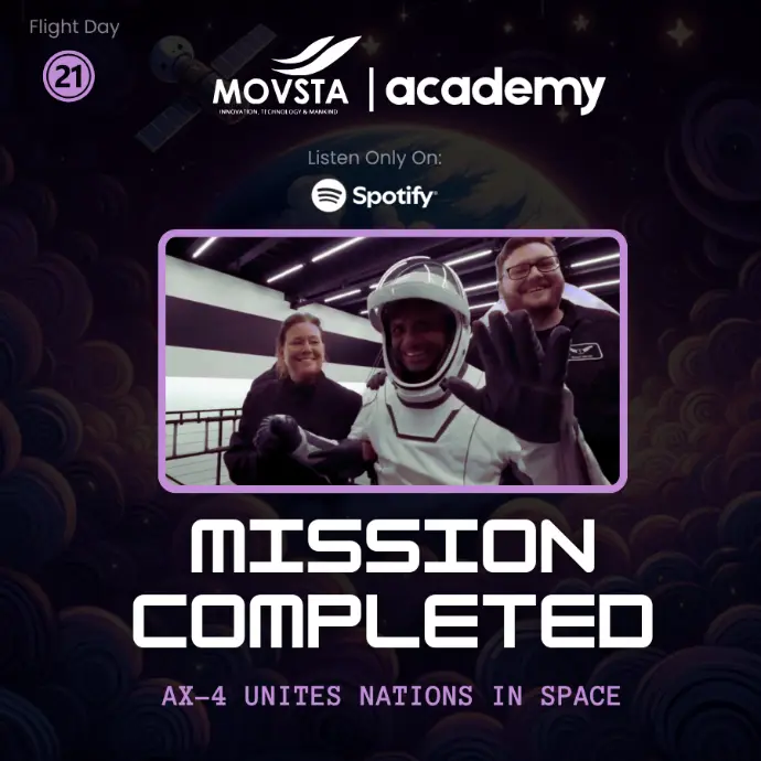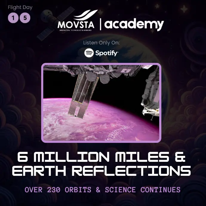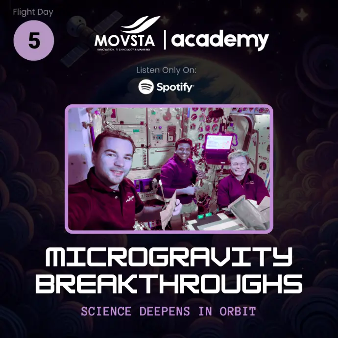 Through The ISS Chronicles podcast, Movsta Academy decoded daily mission insights into storytelling and science for the next generation. Available on Spotify, it preserves India’s return to space in audio — raw, technical, and timeless. Click below on the cards to listen them.